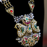 Bold and heritage necklace with traditional designs, this necklace is crafted with temple motifs, multocolor gemstone .Finished forming on a tarnish-free copper base