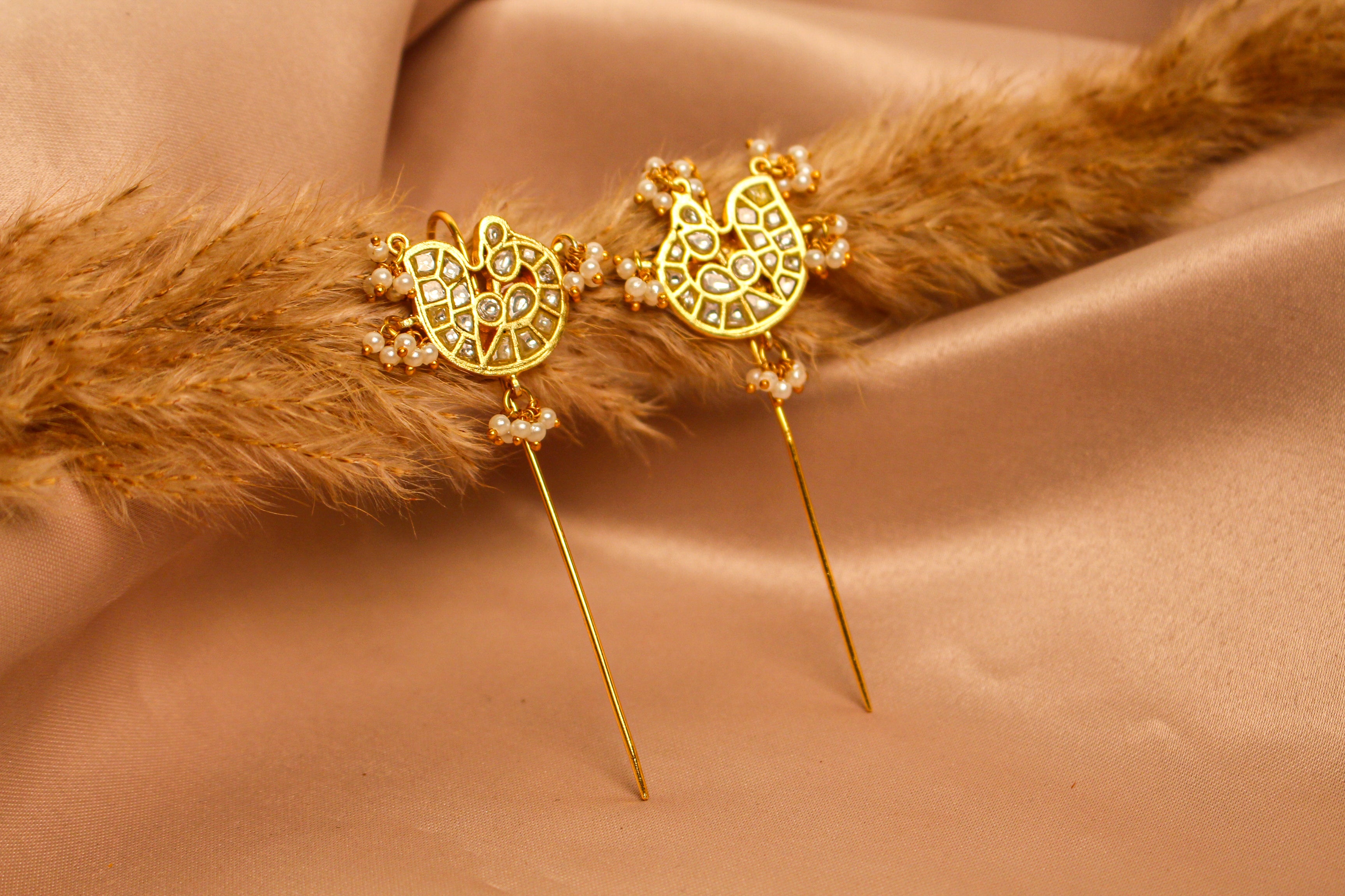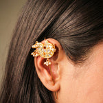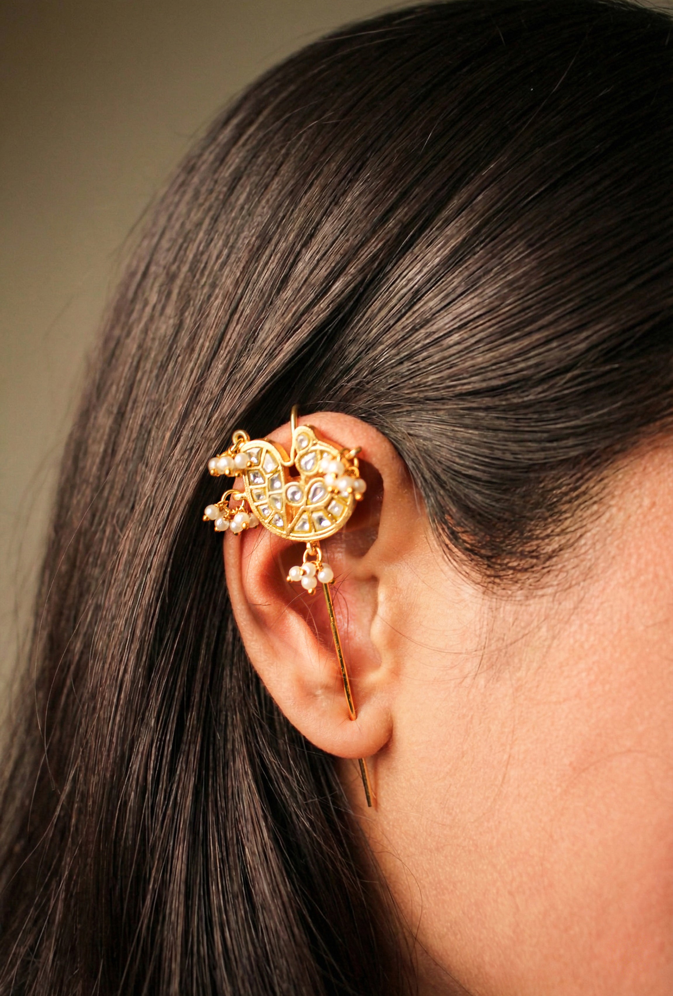 Heritage White & Golden Kundan Earcuff with Dangling Perals