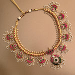 Beautiful and elegant necklace with kundan and gemstone work hued in pink and dark green colors
