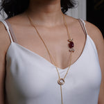 Sleek and lightweight chain semi precious stones with green onyx , ruby red stones:Isha Collection , Subtle Luxe Chain