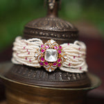 Statement Kundan Heritage Bracelet with White Cultured Pearls