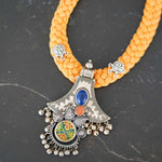 Yellow cotton braided necklace with Afghani Pendant