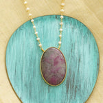 Dainty neckpiece with pearls, silver, and pink moss agate stone