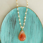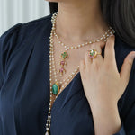 Handcrafted dainty neckpiece made with pearls, silver, aventurine stone