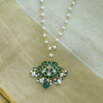 Neckpiece made with pearls, silver, kundan, kemp stones and onyx stone