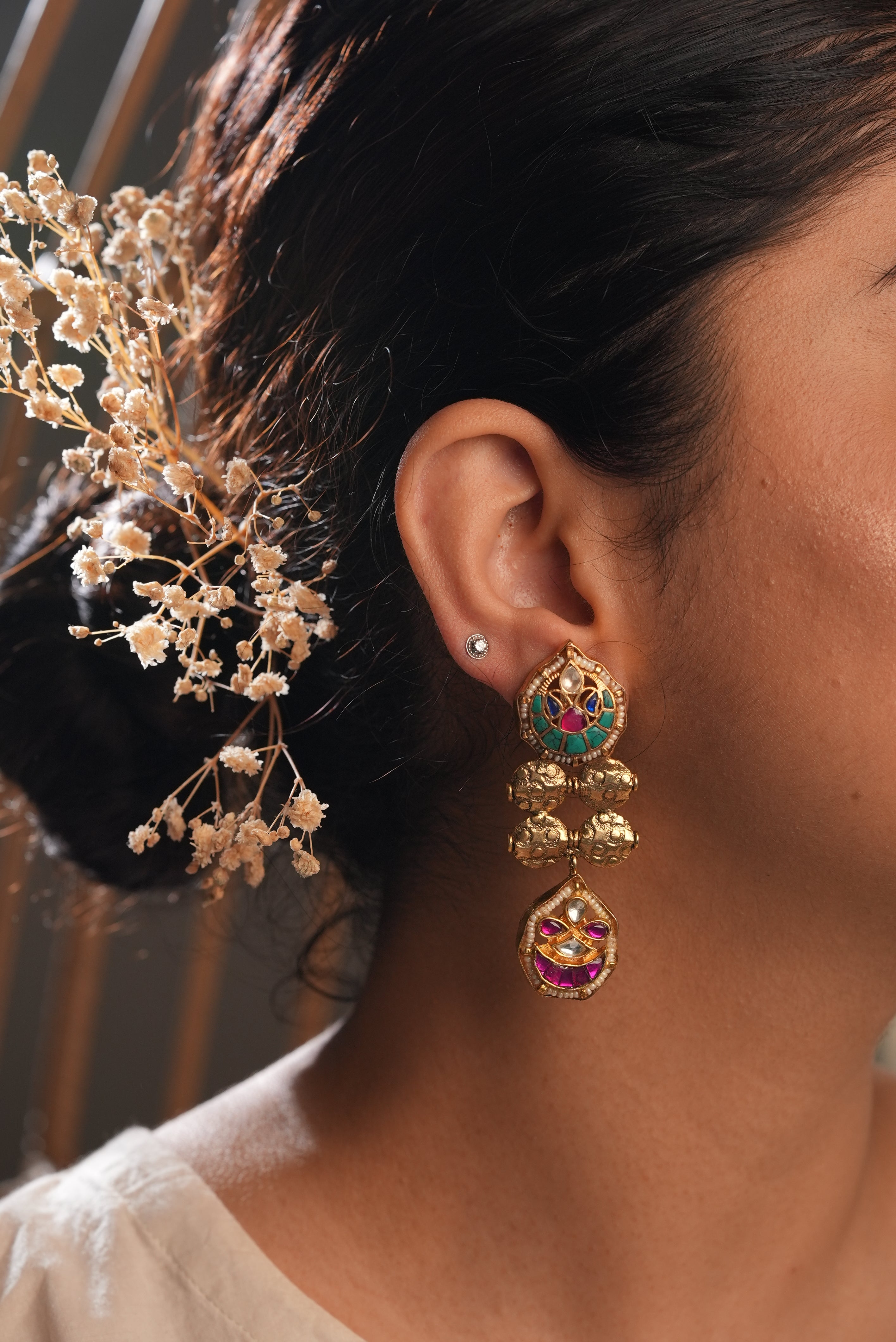 Majestic fusion earrings, Kundan Design with Green Semi-precious stone- Fiza Collection