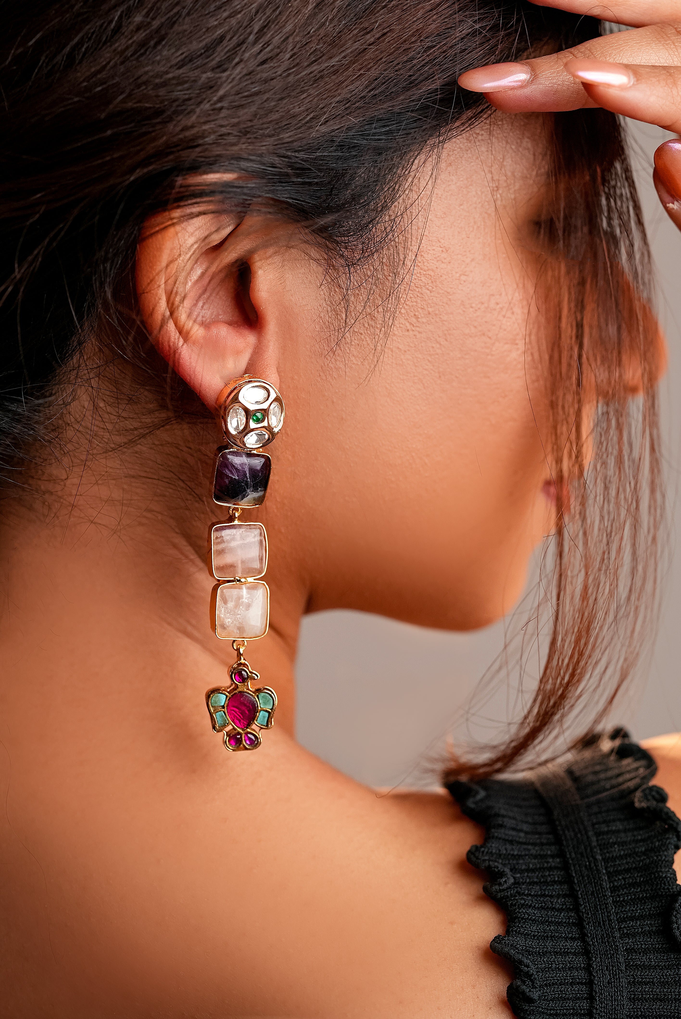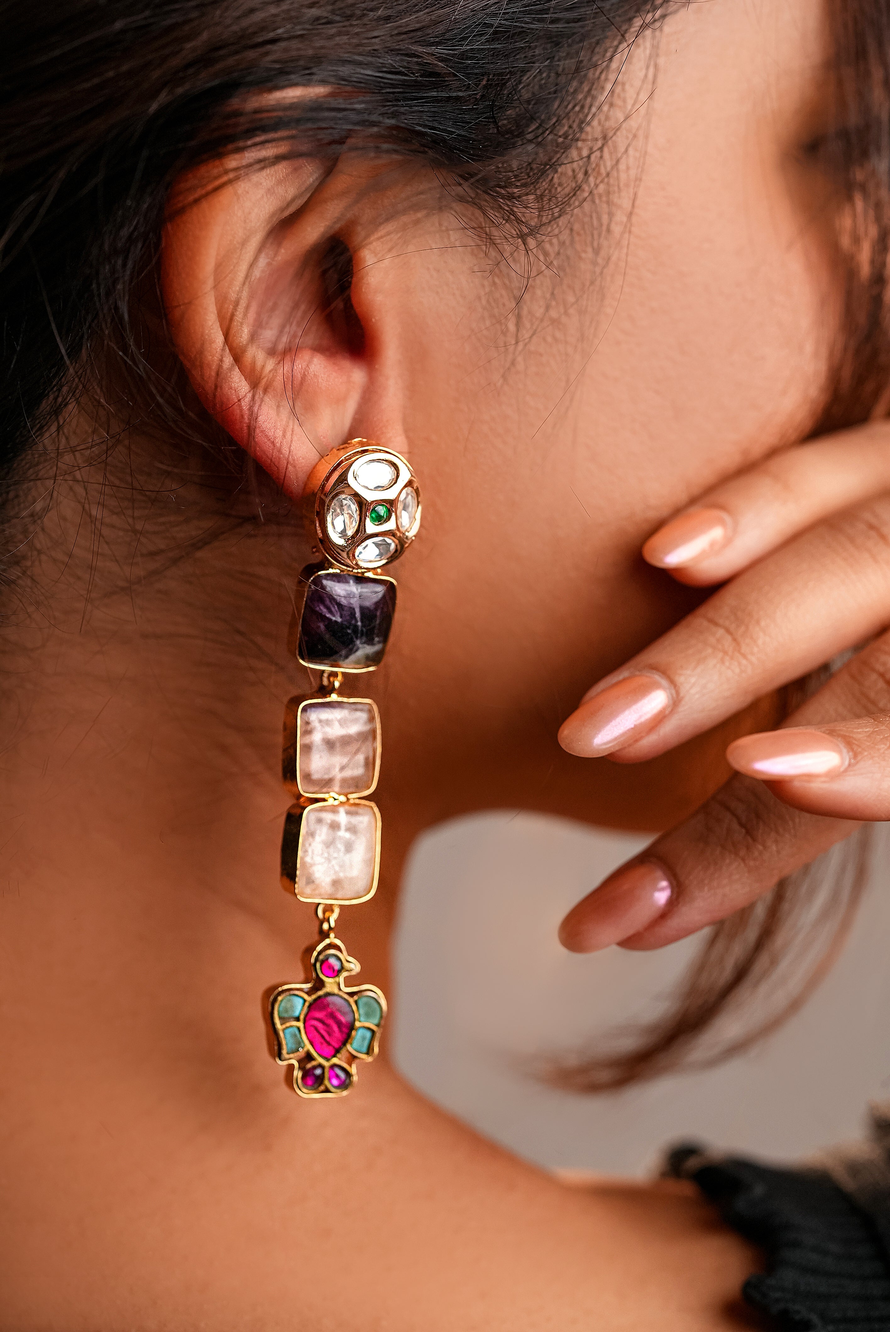 Majestic fusion earrings with beautiful Pink Quartz Kundan Design- Fiza Collection