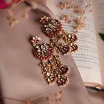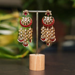 Elegant Jumkas with Kundan embellishments in rich red exude offering a vibrant and traditional touch.