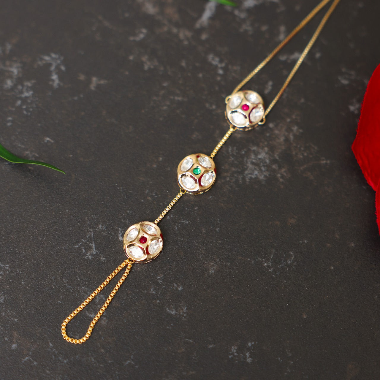 Delicate hathphool adorned with gemstones and kundan embellishments, perfect for a graceful appeal.