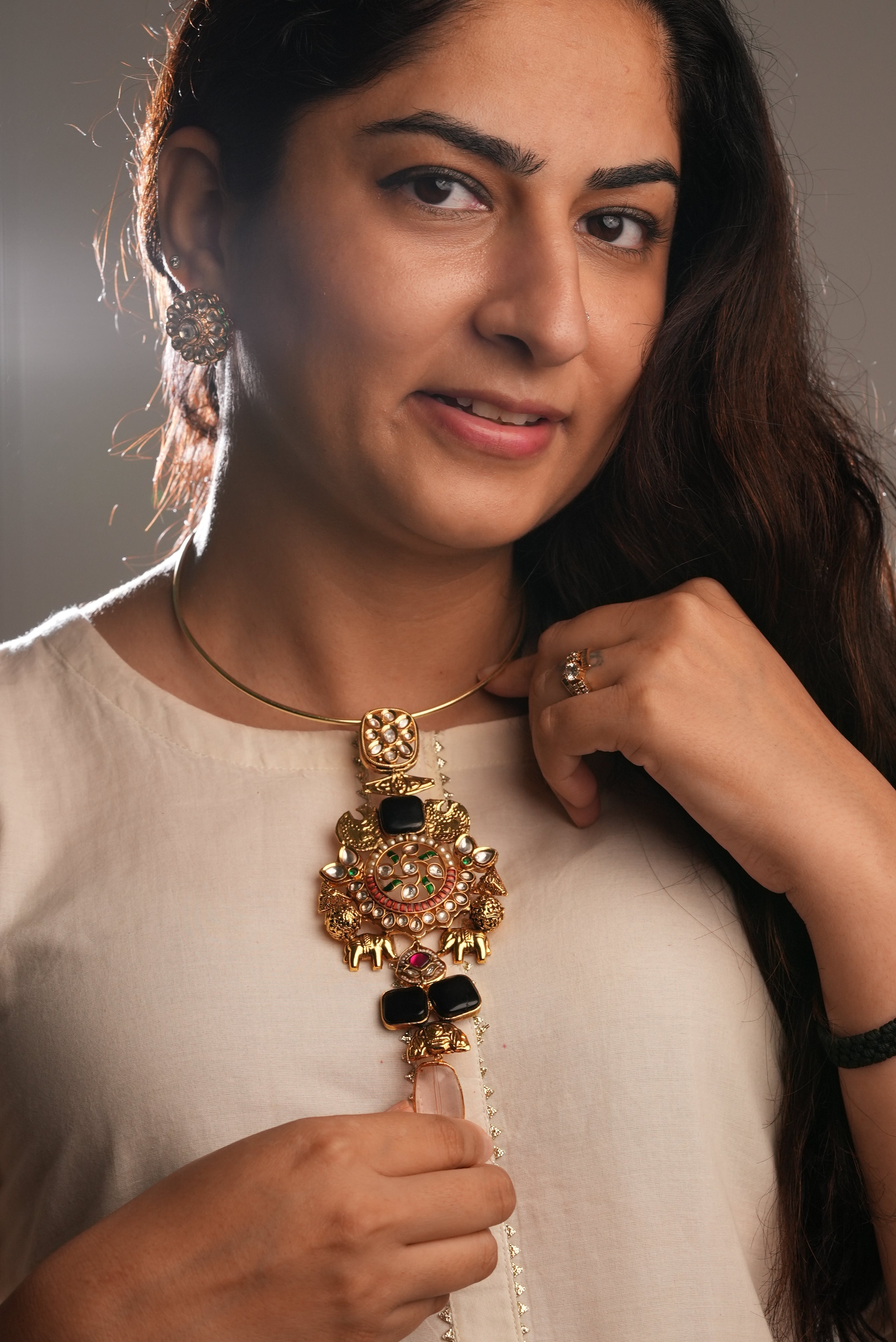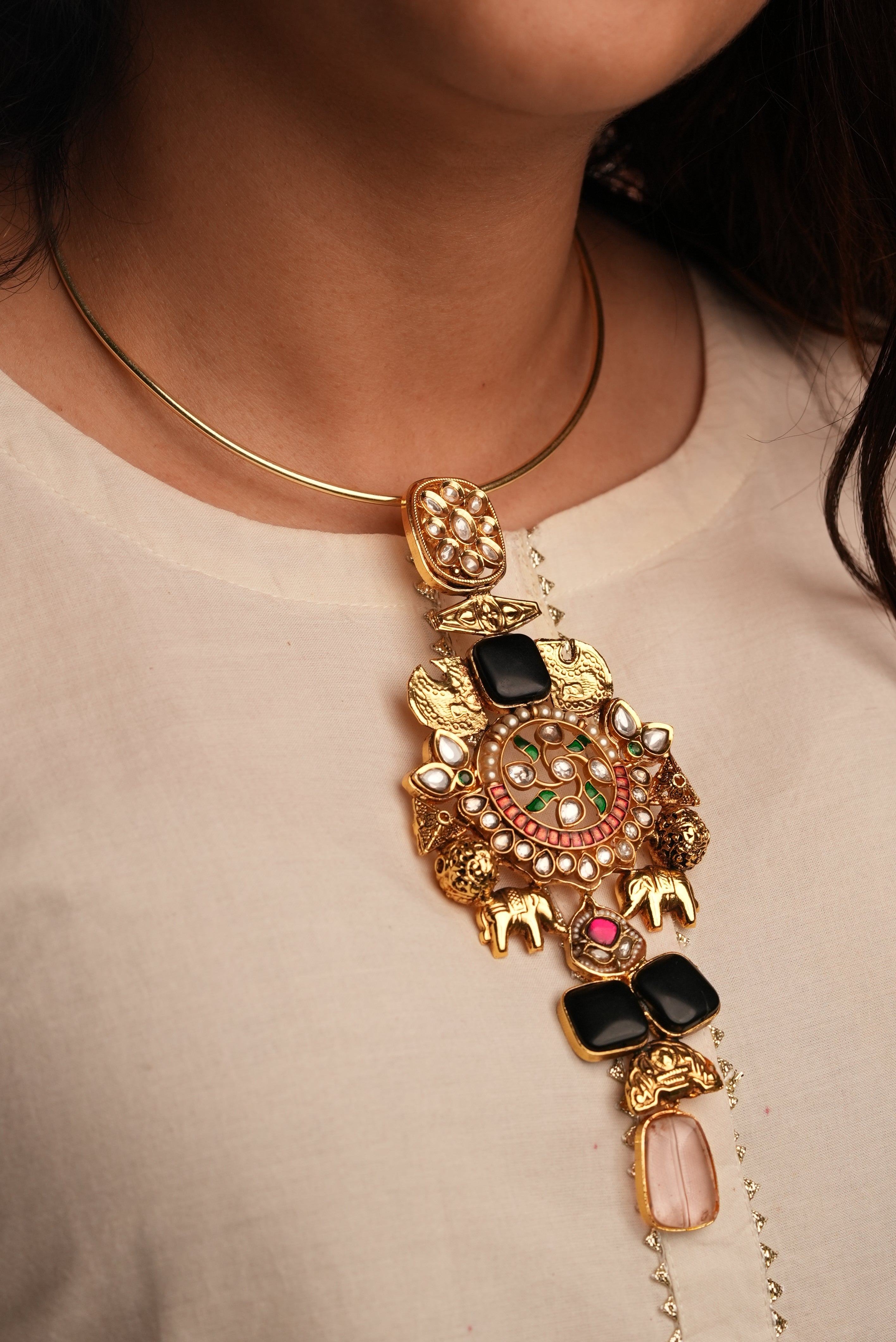 Heritage Hasli: Kundan design with semi-precious stone in black