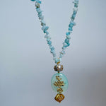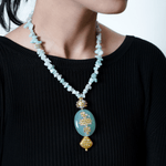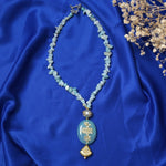 Material: A beautiful aquamarine beads with an agate pendant with kundan work