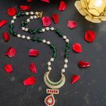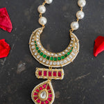 Beautifully handcrafted temple jewelry pendant strung with shell pearls and colored Duldul beads
