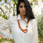 Lion pendant with warm orange ceramic and corals beads (African Collection)