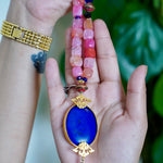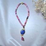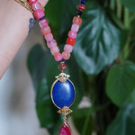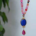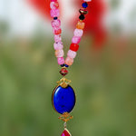 Note: A lovely shaded pink agate beads with a lapis lazuli pendant with a handcrafted motif