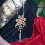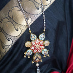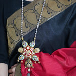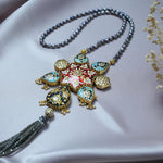 Material:Striking Meenakari and Kundan pendant with antique grey colored pearls