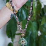 Material: A stunning green agate pendant with kundan work strung on a beautiful