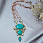 Material: Stunning Turquoise and kundan studded pendant with peach color crystals
