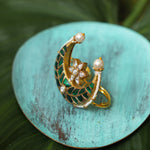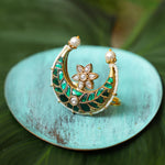 Emerald Green Crescent Pearl Ring : emerald-hued crescent ring- Finger Ring Collection