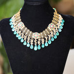 A statement necklace featuring intricate kundan embellishments, vibrant gemstones, and rich gold plating, perfect for adding a regal touch.