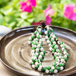 Green & White African Krobo Glass Beads in Berry Style (Macreme Knots) (A'marie Collection)