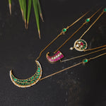 Long chain with vibrant heritage hues of pink , green: Isha Collection , BlushEmerald Heritage Chain