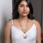 A timeless layered chain necklace adorned with semi-precious gemstones and gold-plated detailing, perfect for making an impression.