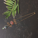 Long chain with a handcrafted design featuring orangish-brown and shaded black Jasper stones for a bold, unique look.