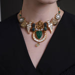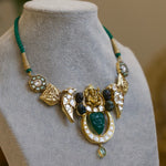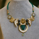 A handcrafted statement choker with intricate carvings, kundan embellishments, and temple-style motifs, made with 1gm gold forming for an opulent touch.