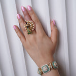 Royal Peacock Ring: Lustrous kundan ring with green charm - Ring Collection