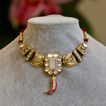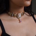 Zariya Heritage Choker: Modern regal choker with pink pendant - Isha Collection