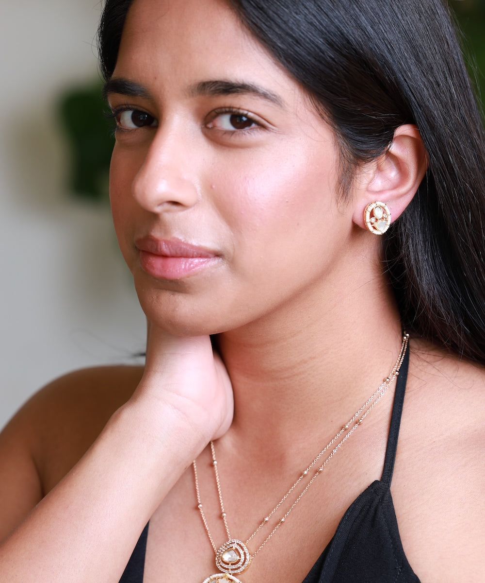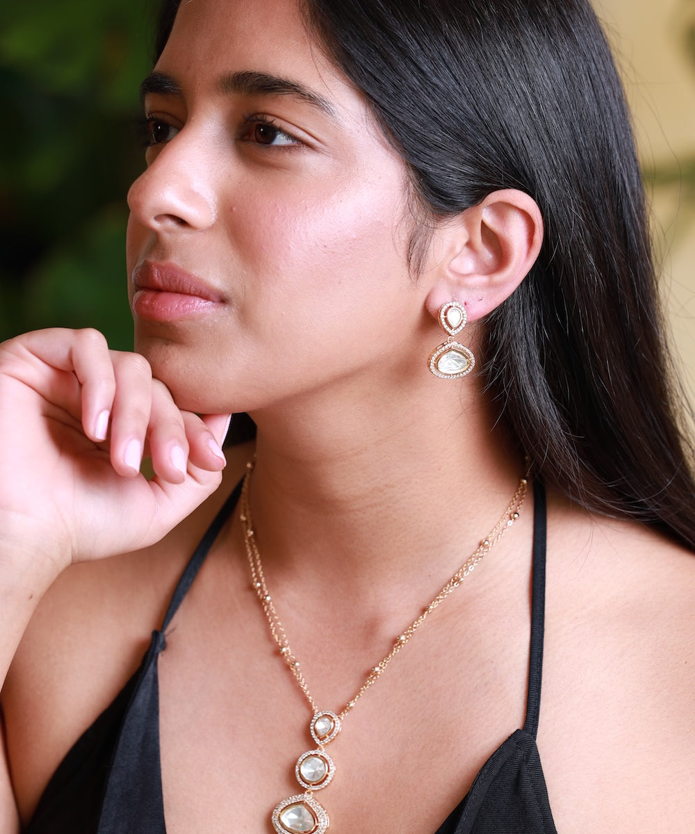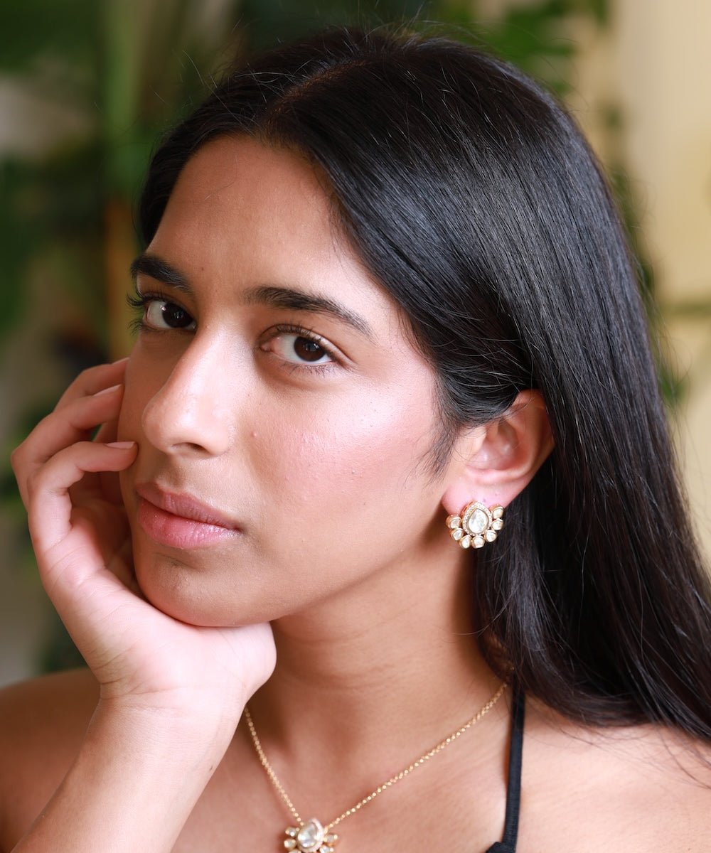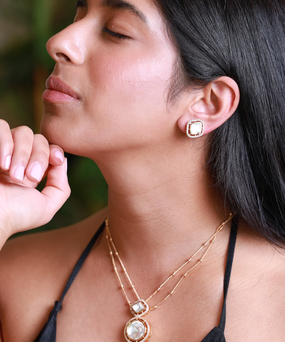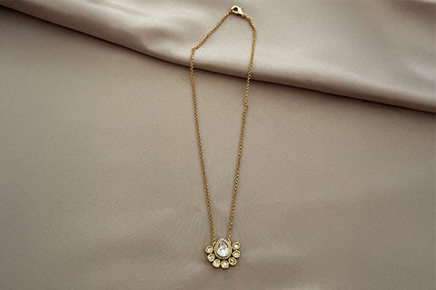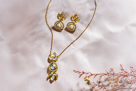 Luminous Mesh Gold Bangles Bracelet with White Kundan and Stones: Statement Cuff