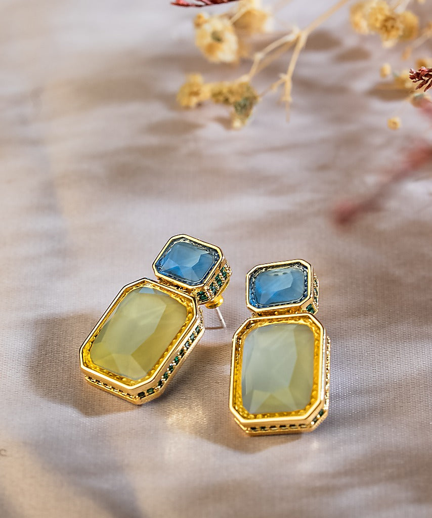 Semi-Precious Yellow Citrine and Blue Topaz Earrings
