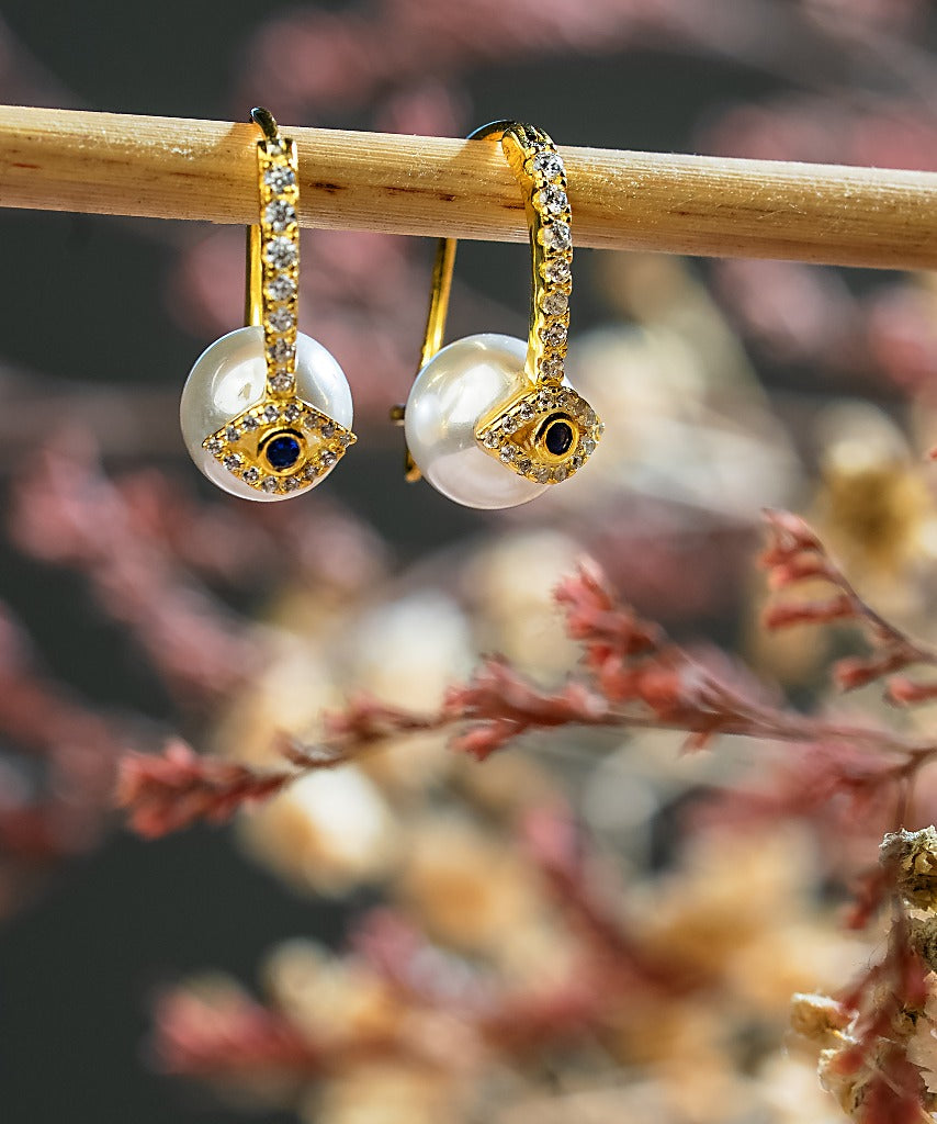 Gold plated earrings with Moonstone and Tourmaline stones (RUI Collection)