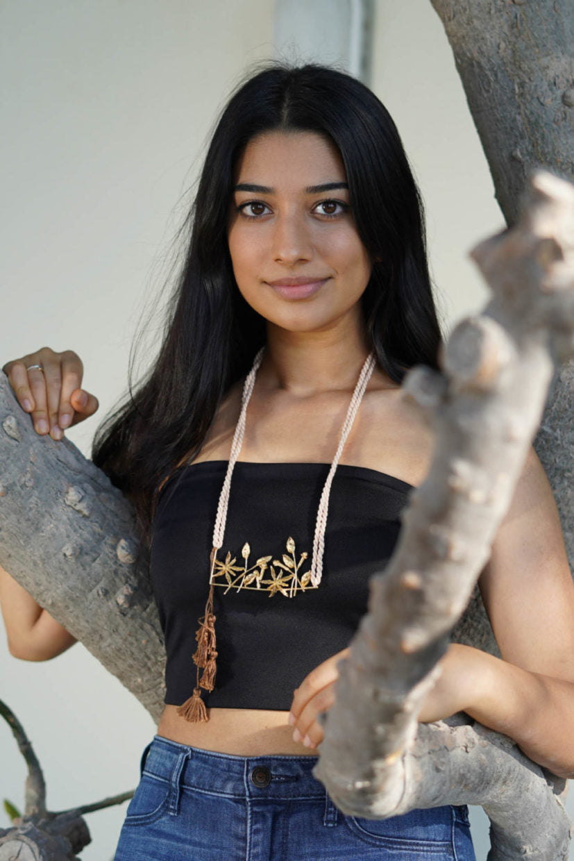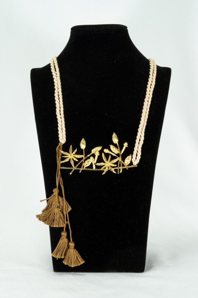 Spices Inspired Gold Plated pendant paired with brown Satin rope (Ananya Collection)