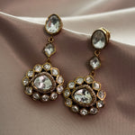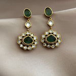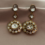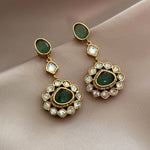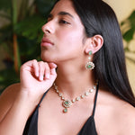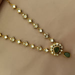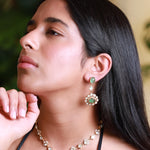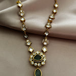 Elegant green moozanite polki stone necklace with silver signity stones, offering a luxurious and sophisticated look with green moozanite polki stone earings