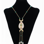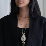White quartz and kundan pendant paired with grey pearls & green fluroite beads