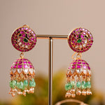Majestic Jhumka, Kundan Circle at Top with Green Semi-precious stone Drop Design
