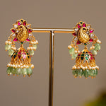 Majestic Jhumka with Kundan & Green Semi-precious stone Drop Design