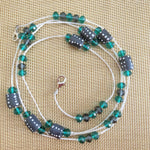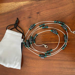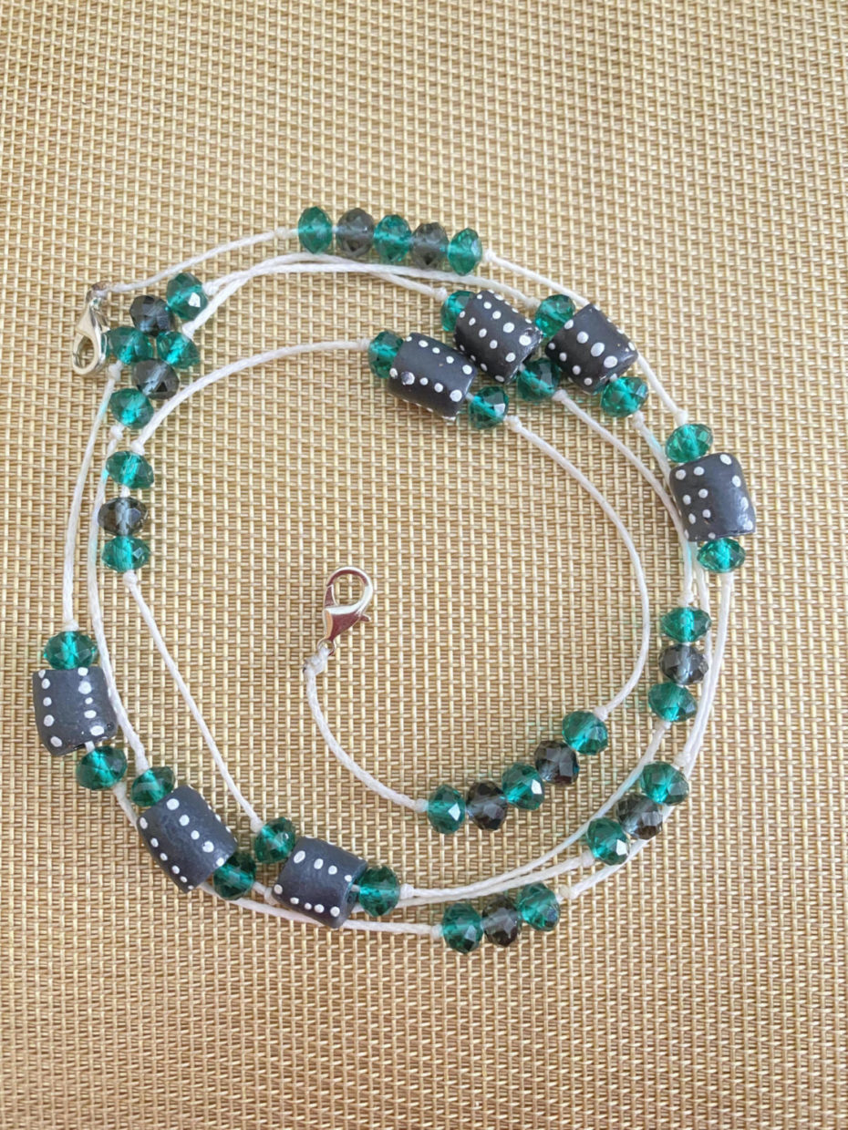 Green Crystals and African Recycled Glass Krobo Beads Mask Chain