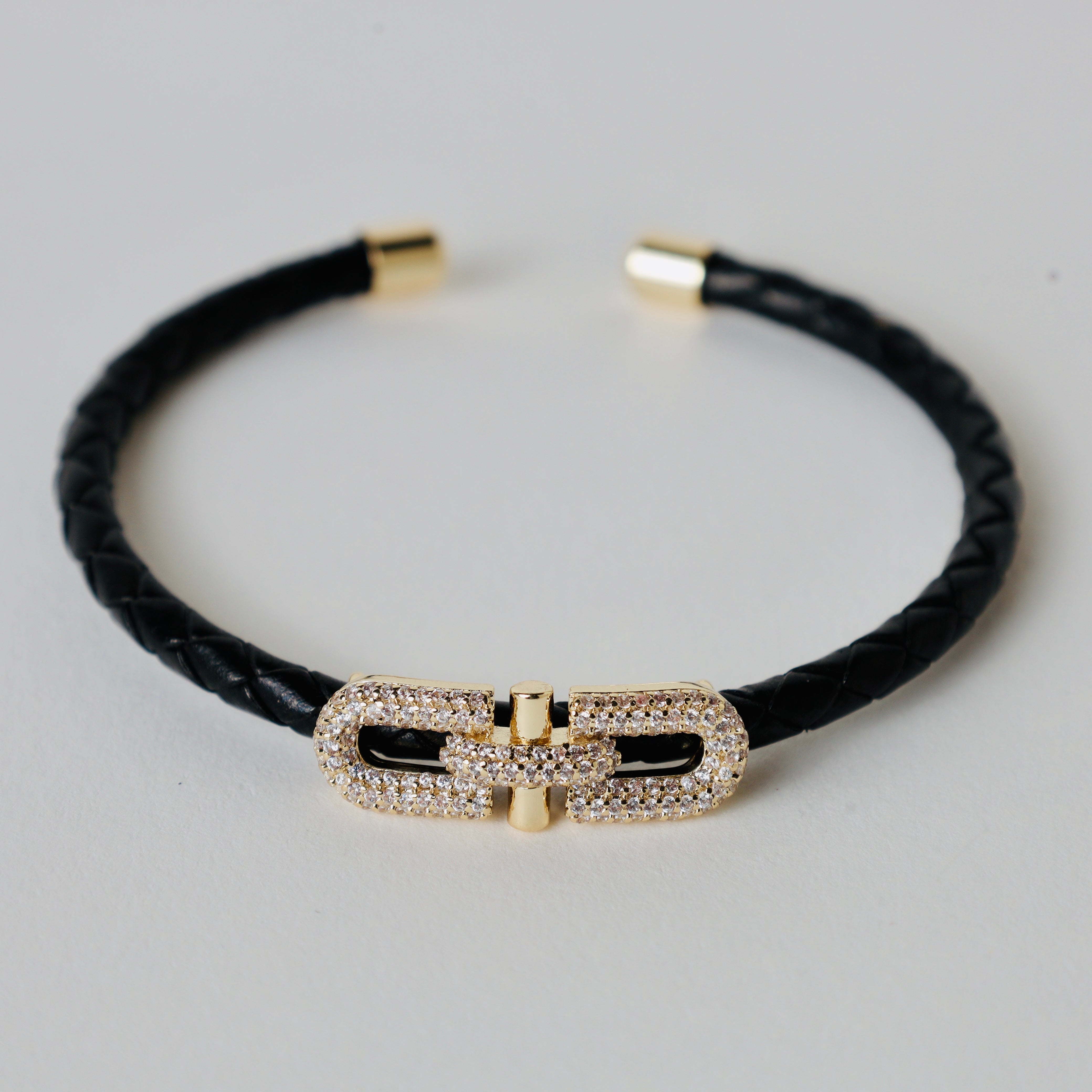 High-quality leather for a comfortable yet stylish wear with gold detailing and added Swarovski