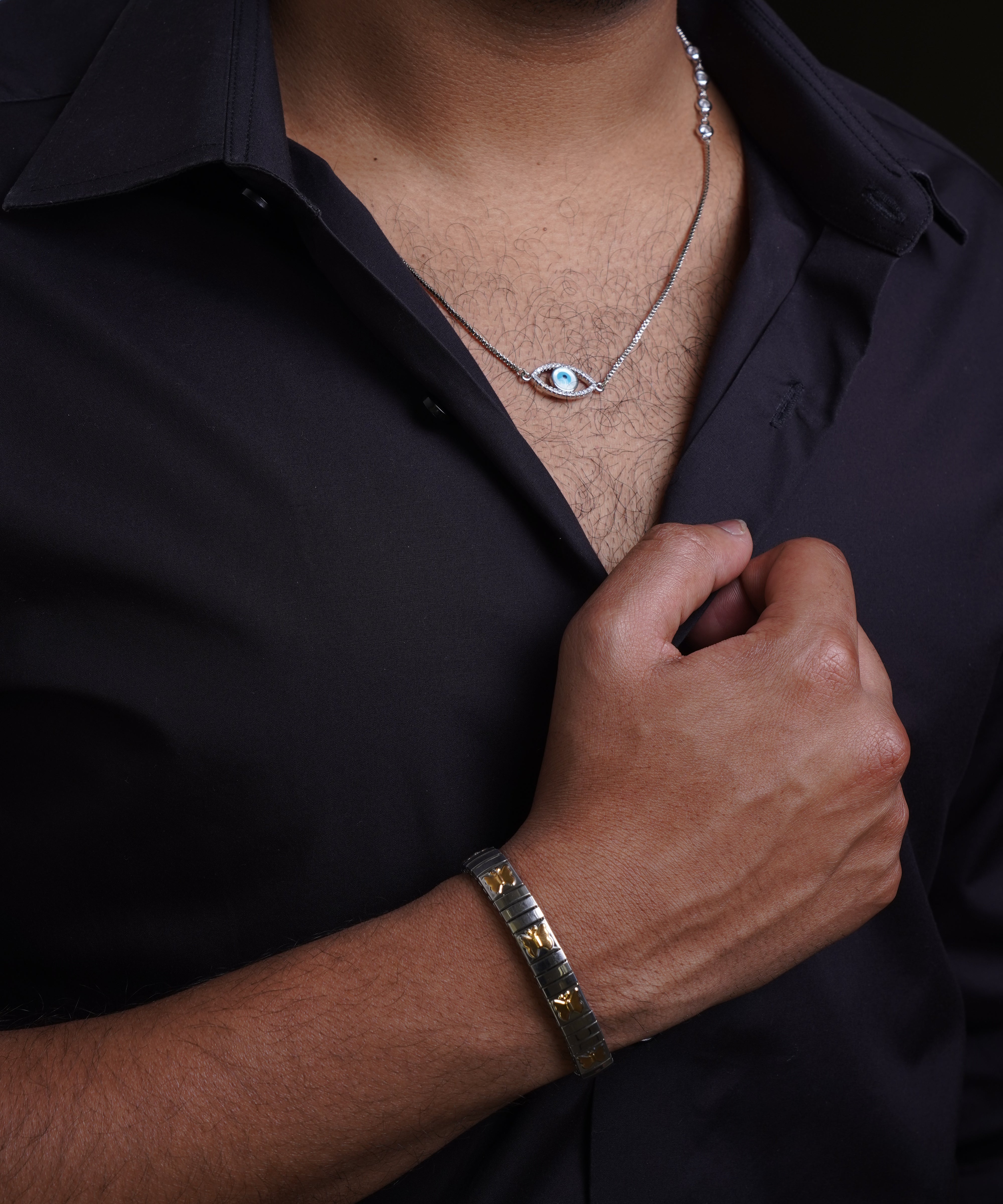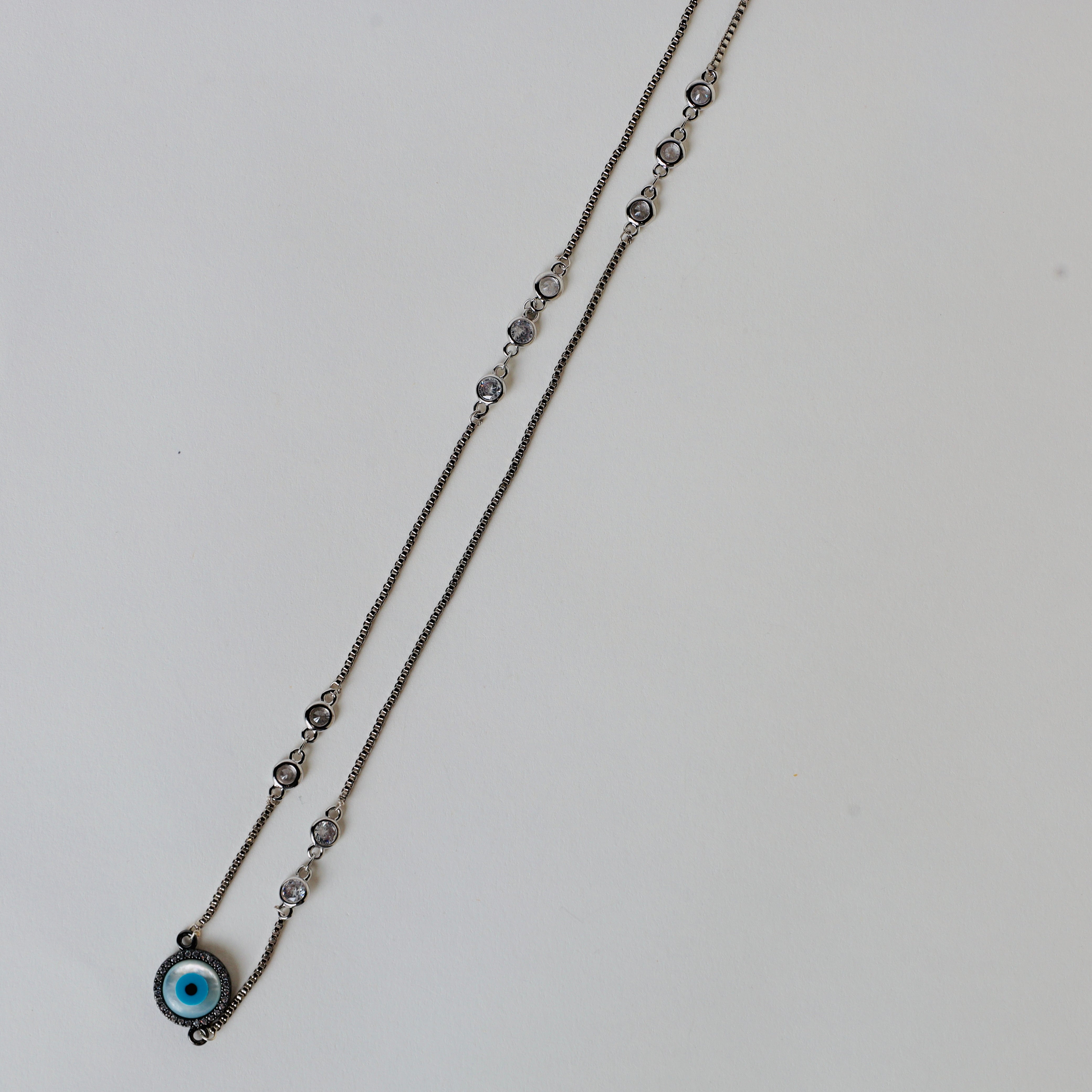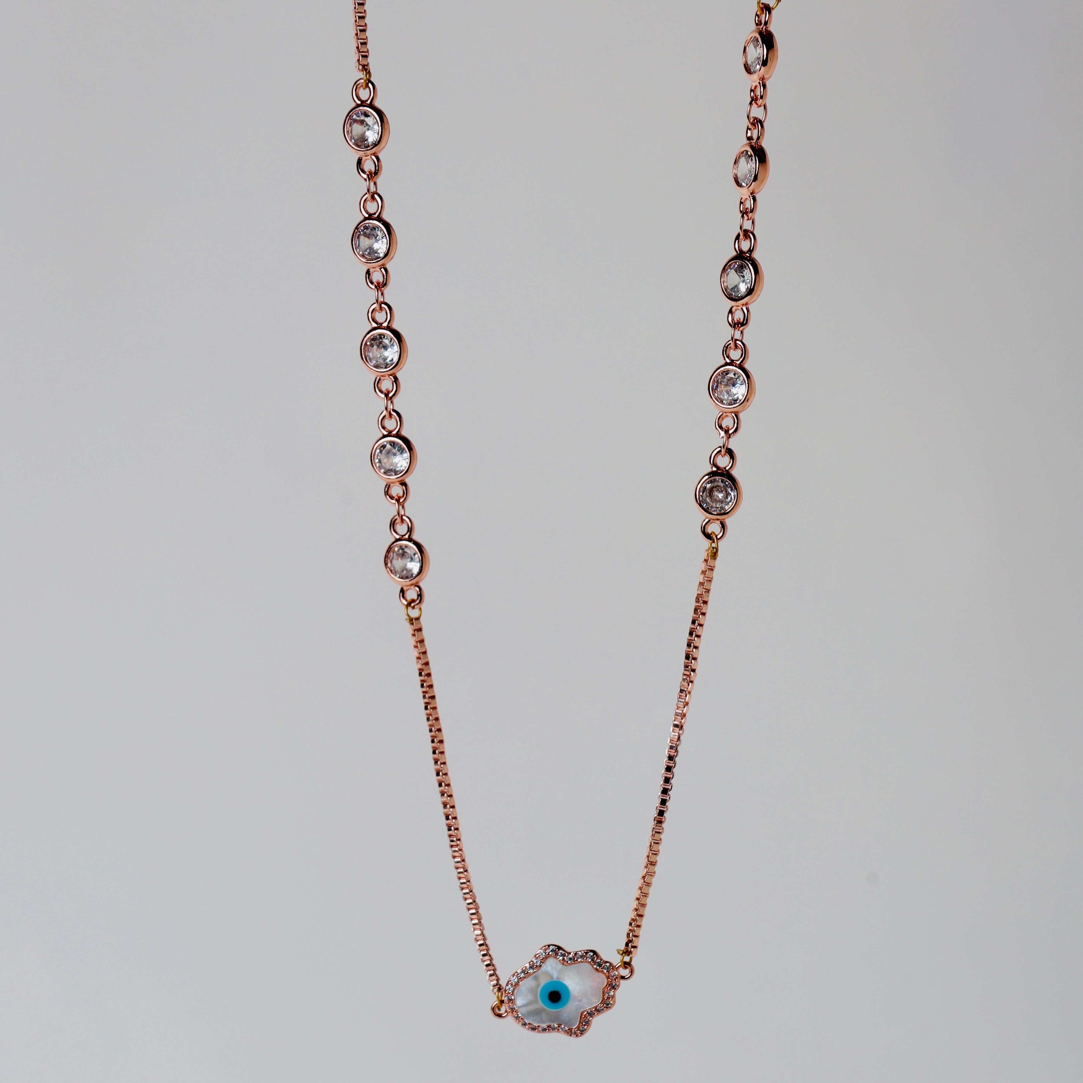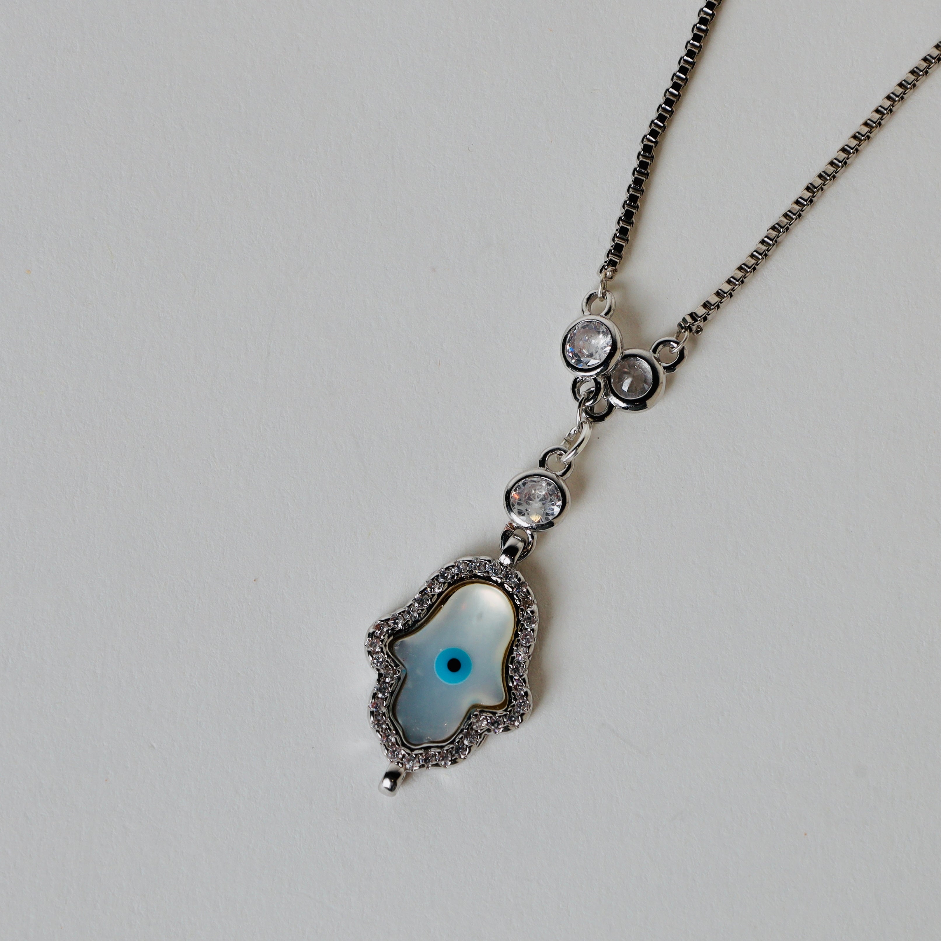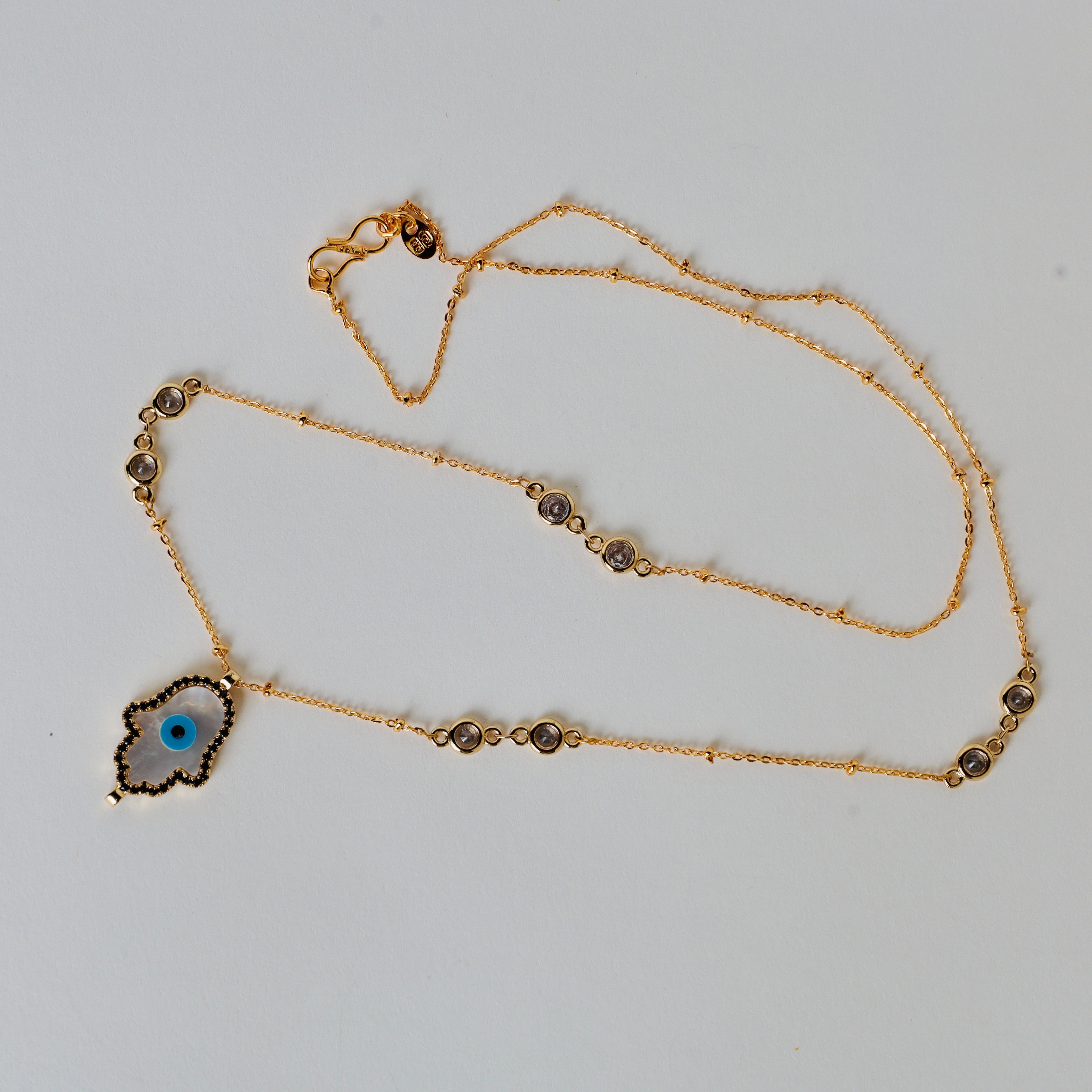 Fatima's hand Evil eye in gold chain with swaroski stones Silver
