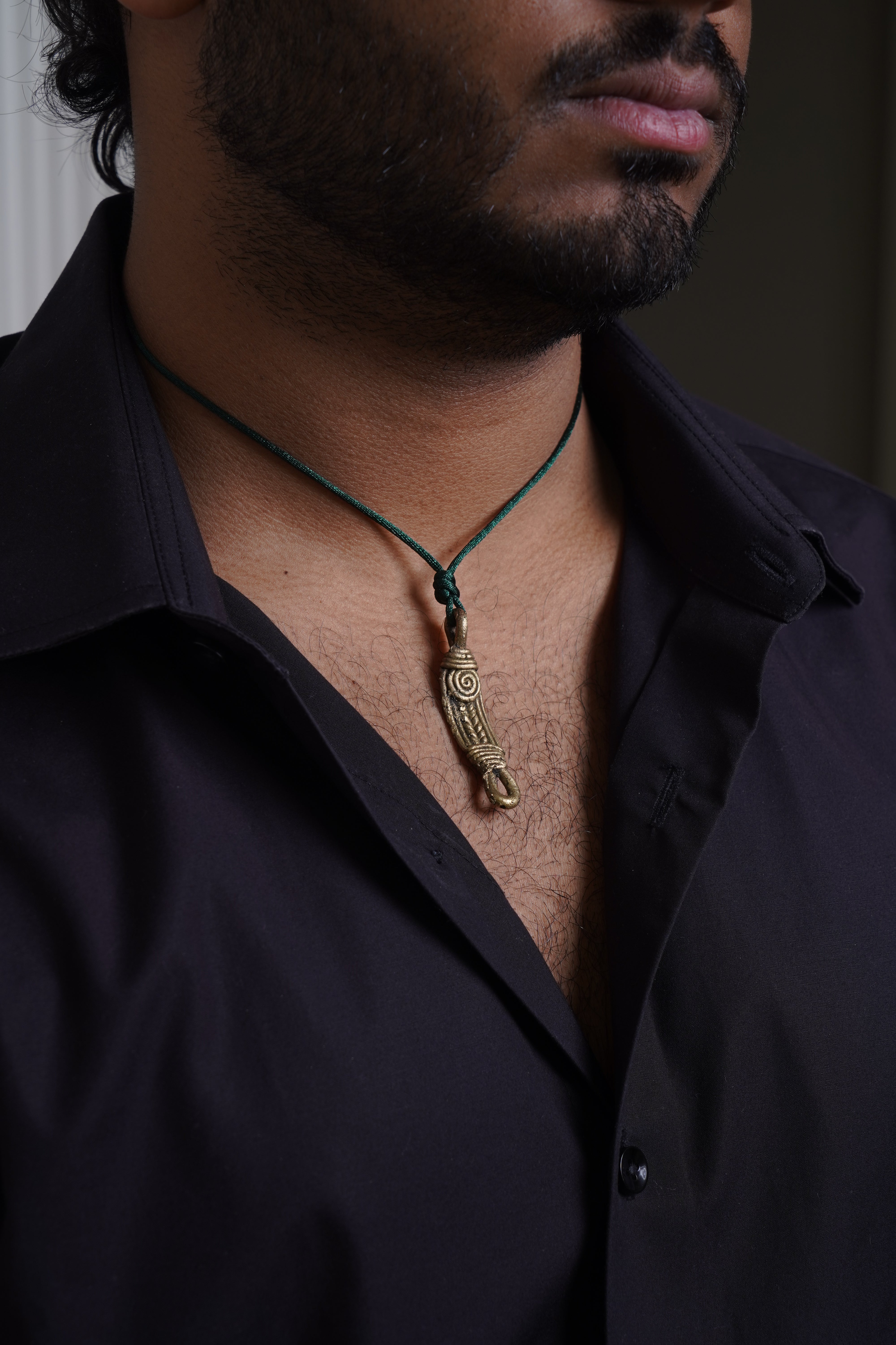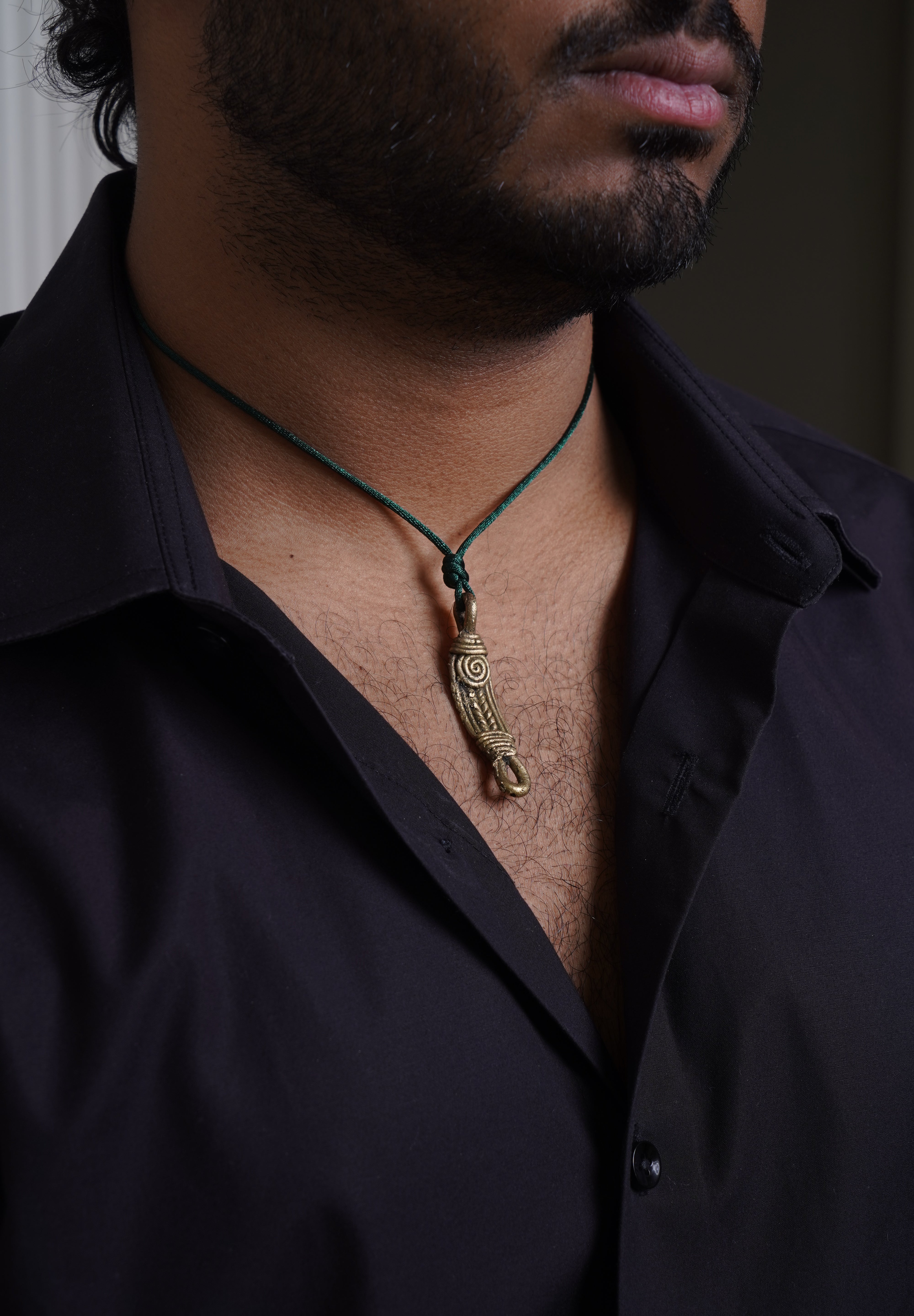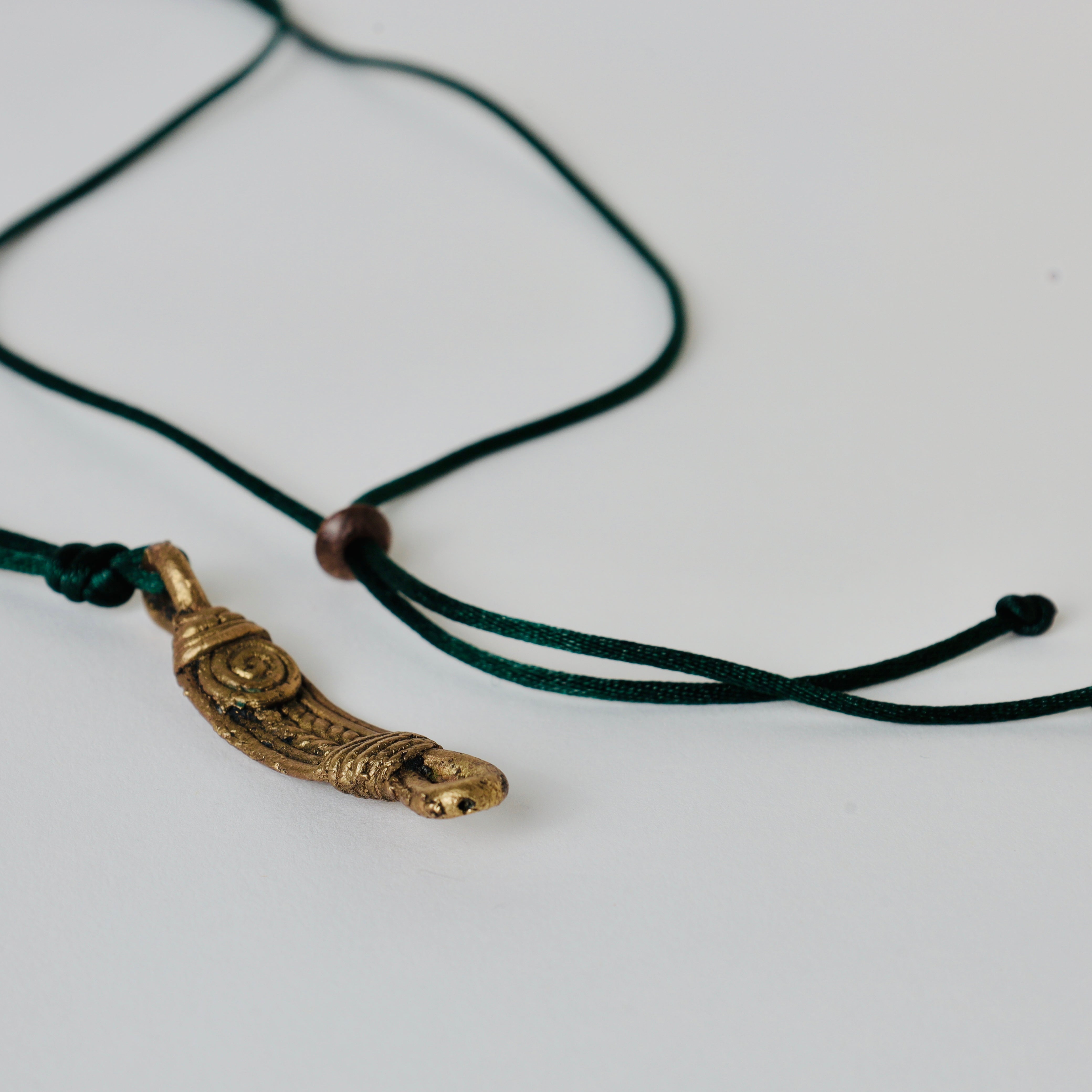 dark green cotton silk thread with brass pendant