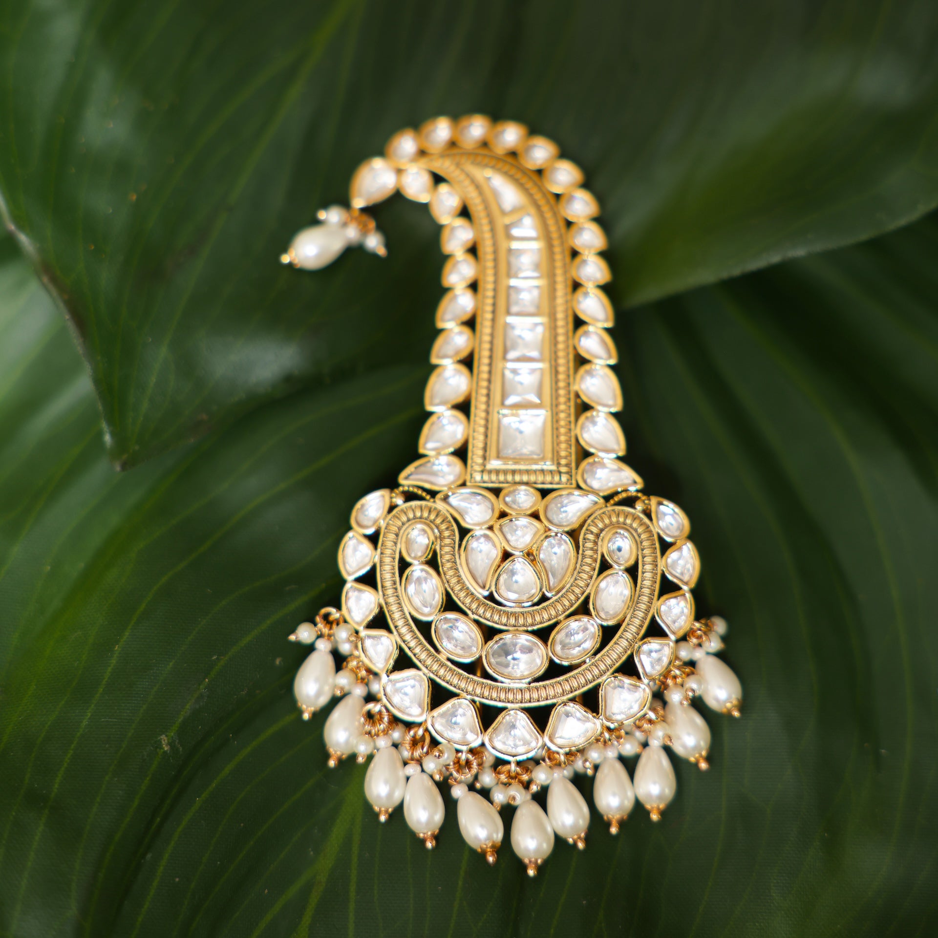 A beautifully crafted kalgi adorned with kundan embellishments for a refined and timeless look.