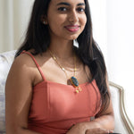 Materials Used: A stunning Labradorite pendant with a spiritual symbol that represents the mind, body, and soul. Strung in a gold-plated chain.