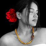 Signature beaded necklace with Tibetan Side pendant and Yellow beads