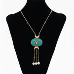 Turquoise kundan pendant paired with green fluroite & pearl beads