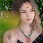 Materials Used: Gold polished Silver pendant with pink kemp stones and jade beads