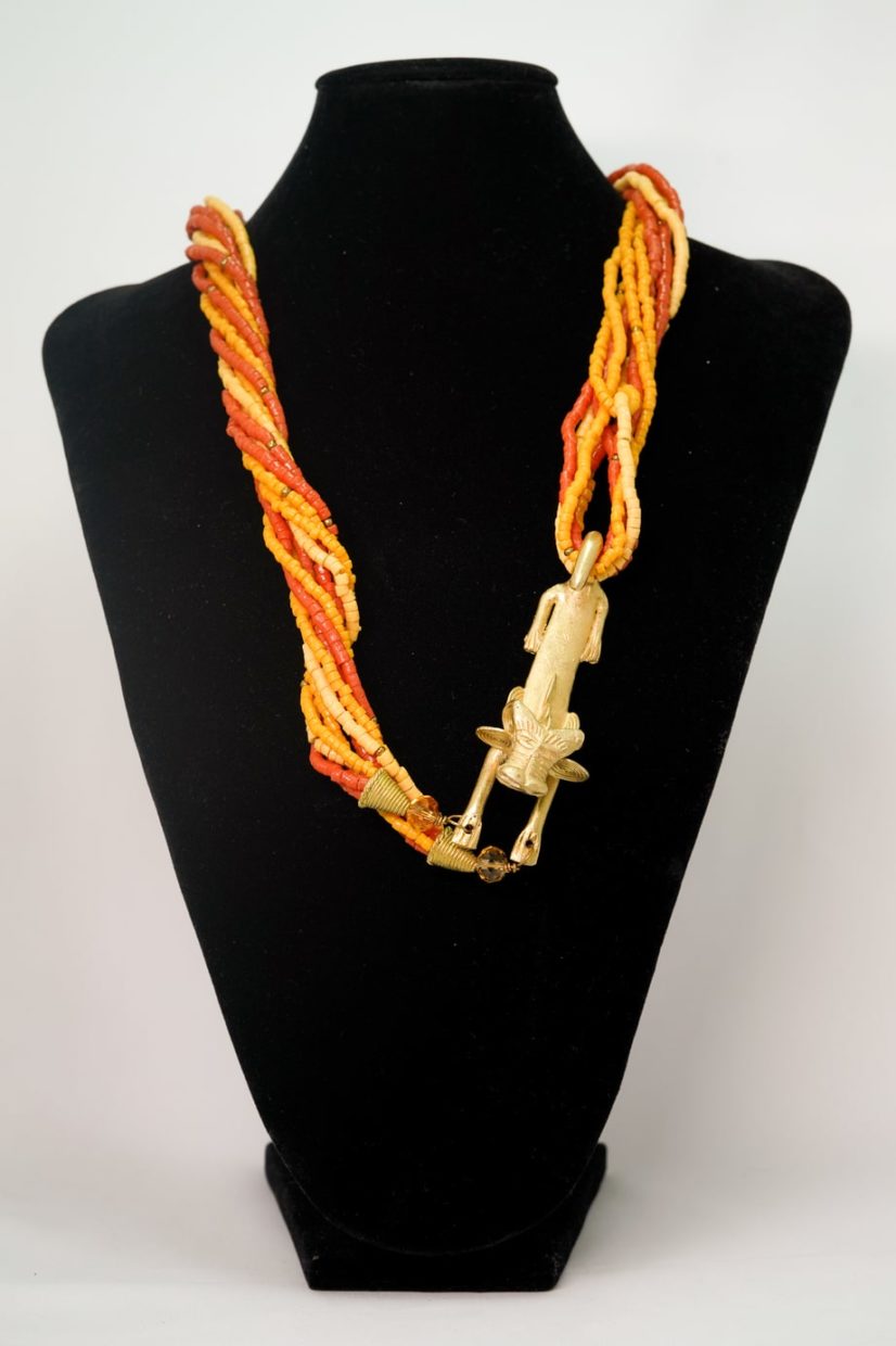 Lion pendant with warm orange ceramic and corals beads (African Collection)