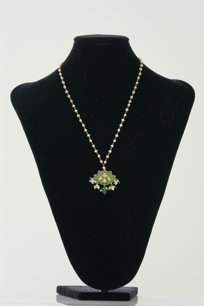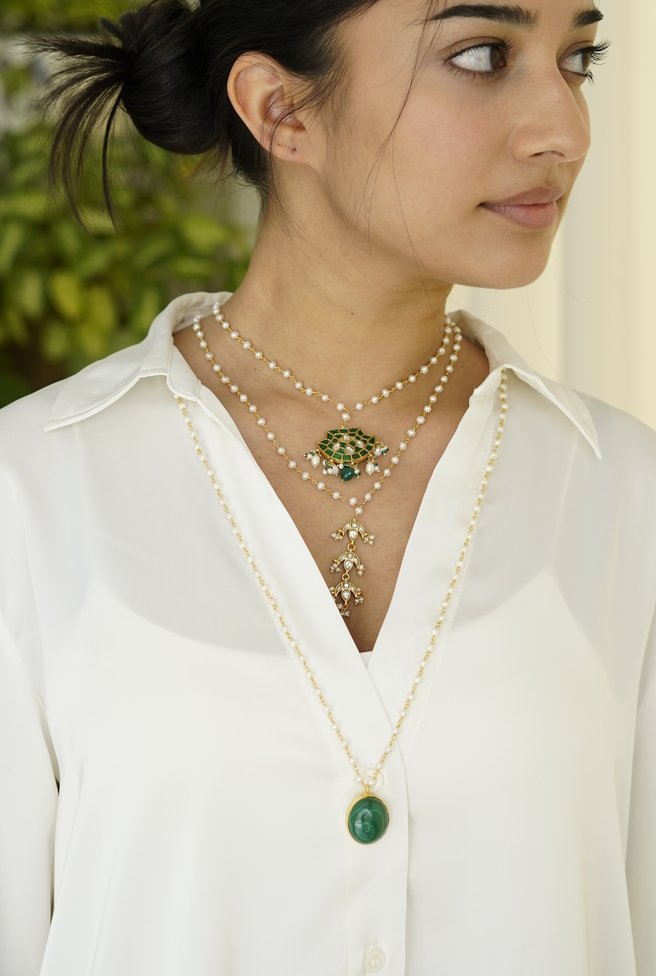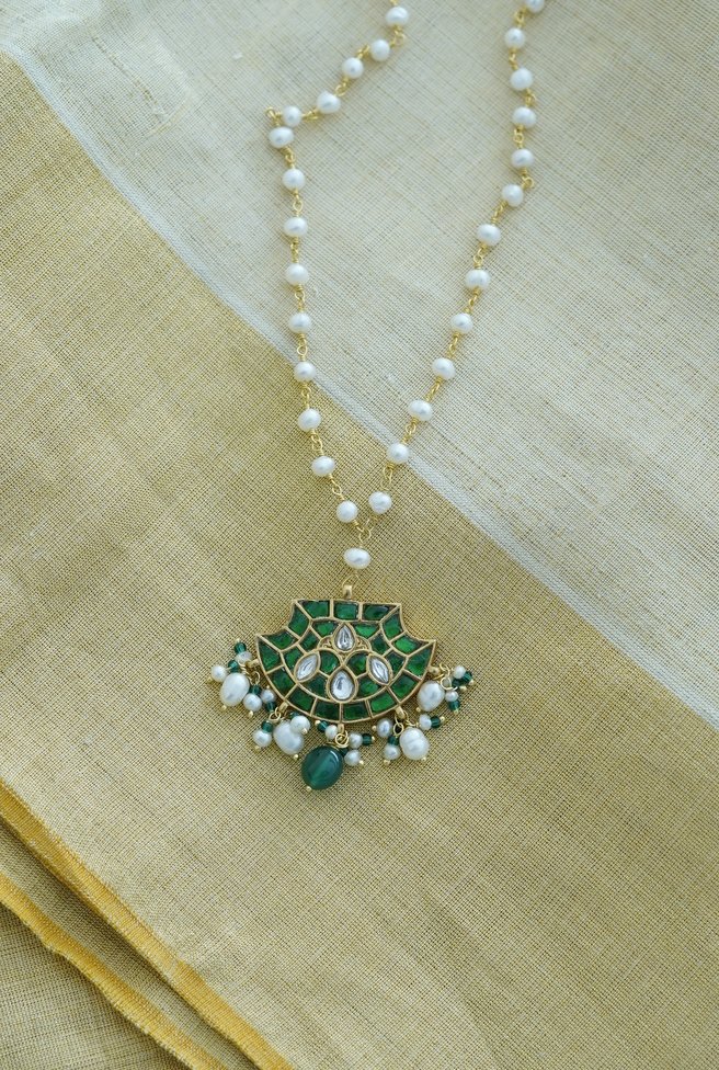 Neckpiece made with pearls, silver, kundan, kemp stones and onyx stone