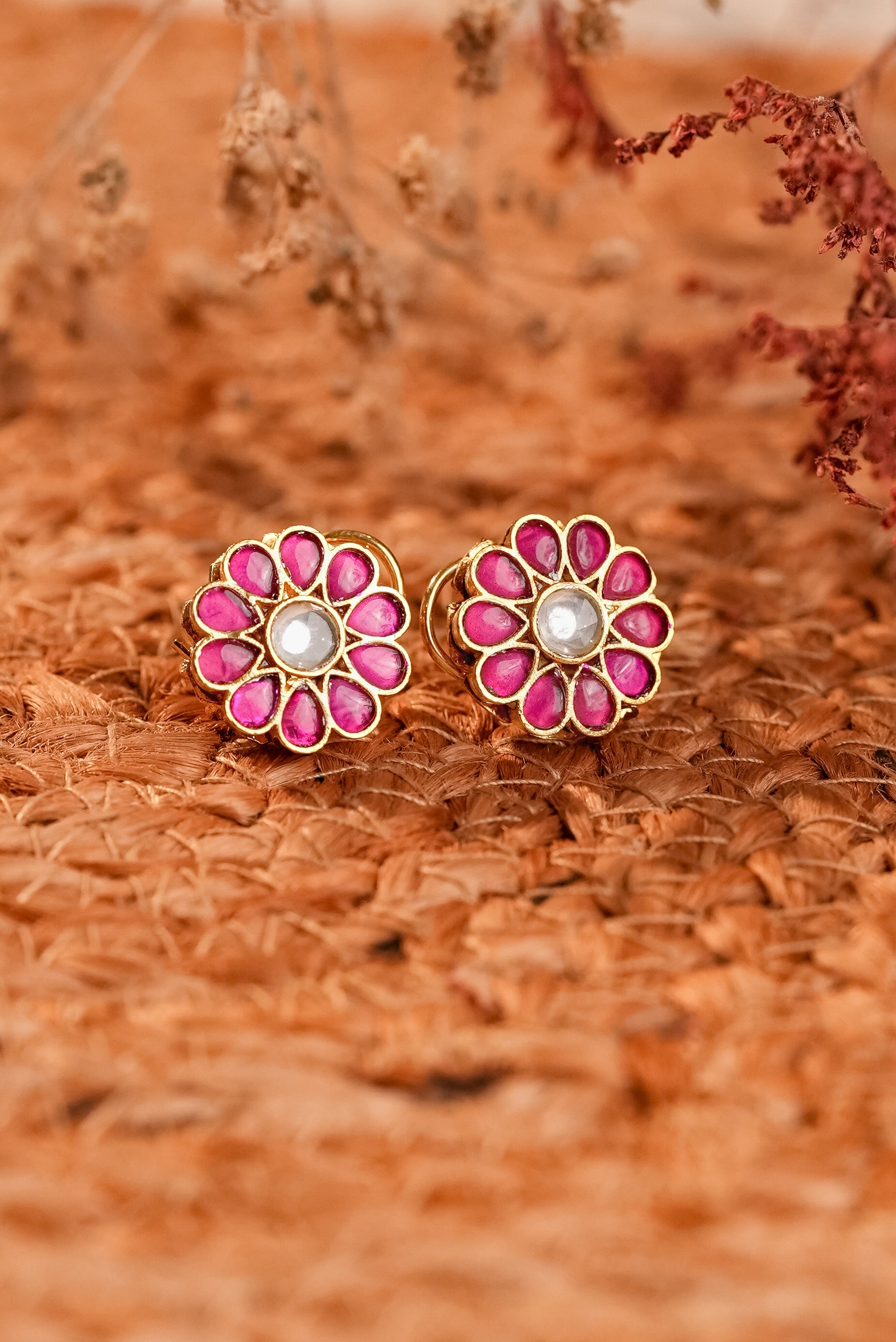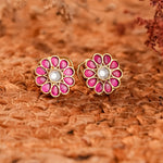 Signity glow Pink Kundan Flower Earrings